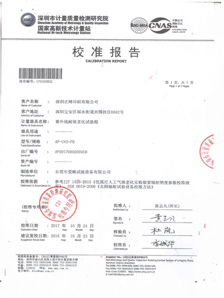 此文關鍵詞:紫外老化箱校準證書,紫外老化箱,校準證書