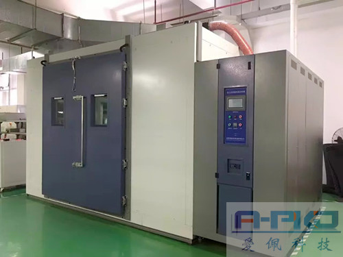 - 步入式恒溫環境測試室是大型實驗容積的測試設備,而步入式恒溫環境測試箱則是相對小一點容積的實驗室,不過他們均是提供給大型零配件或者組件做工業模擬環境溫度測試的設備。此類設備是東莞市愛佩試驗設備有限公司生產的強項,經常有生產有服務,尺寸大小,容積大小,溫度范圍,濕度范圍均可以根據客戶需求定制,溫度波動度均勻度及誤差等均滿足國家標準。