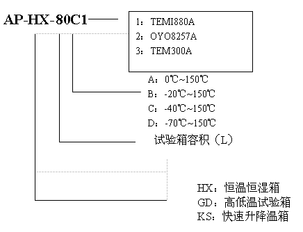 溫濕度范圍Temp humid rangeA:0℃;B:-20℃;C:-40℃;D:-60℃;F:-70℃~+150℃;20%RH-98%RH