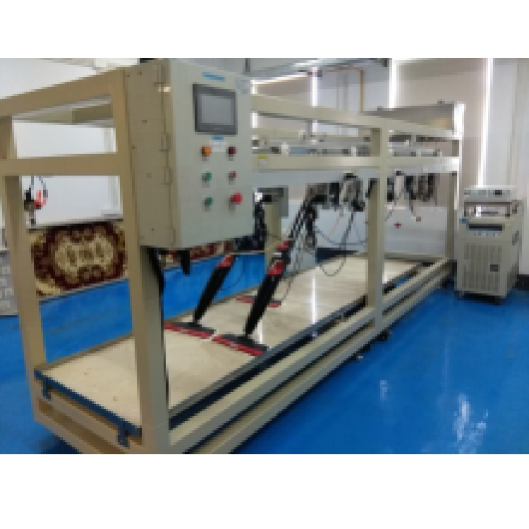 • 主要適用于對吸塵器地毯運動阻力測試的機械運行試驗裝置,試驗時模擬吸塵器實際地面行走情況,測試清潔頭與地毯所產生的摩擦力。在測試臺面鋪設地毯,使吸塵器在測試臺上相對做往復行走動作,工作臺能0.5m/s的速度作往復直線運動,有效恒速運行行程為700mm,總行程1200,試驗機設有吸塵器***裝夾固定機構,并能對被測吸塵器進行通斷式壽命測試。
